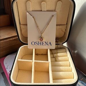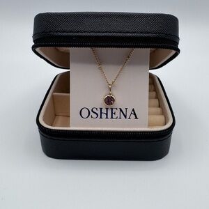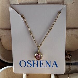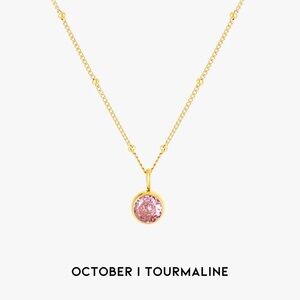 Gold Necklace with Pink Gemstone Pendant, October birthstone