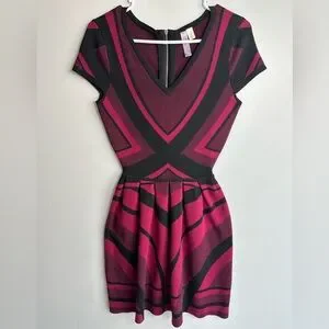 Alya Black and Pink/Red Mini Geometric Knit Dress Size Small