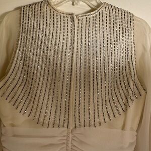Jack Bryan Beaded Chiffon Dress - Sheer Sleeves With Beaded Bodice