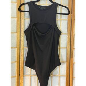 Super cute ribbed bodysuit from Lulu's. Size large. Cutout style. Thong style. Style OD4868. 81% polyester, 10% rayon, 9% spandex. Hand wash. Made in the USA. Excellent condition. Nonsmoking home.