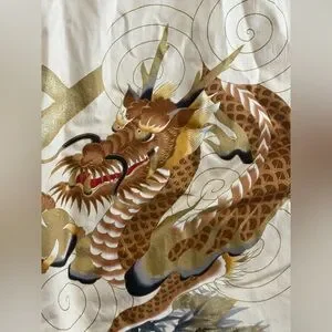 Vintage Japanese Tiger & Dragon 100% Cotton Kimono Wrap Robe, 58 Inches Length