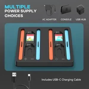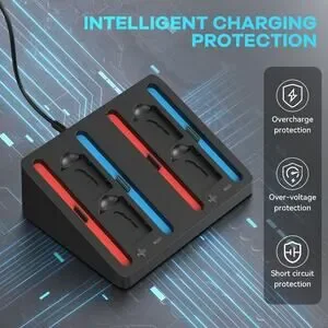 * 【Designed for Switch 2 Joy-Cons】The charging dock can charge 4 controllers simultaneously. Built-in intelligent IC chip to prevents overcharging, overheating, and short circuits. Protect your controllers’ battery, providing peace of mind during overnight charging.