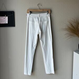 Ann Demeulemeester White Trouser Pants. Slim leg. Button tabs at the waist. Fly with button closure. High rise. 100% cotton. Back pockets. Size IT 36, may fit a U.S. size 4.