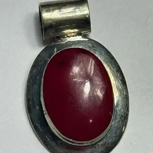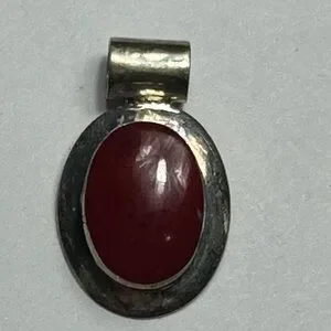 Red Coral & 925 Sterling Silver Oval Shape Pendant