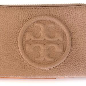 Tory Burch Perry Colorblock Leather Card Case in Devon Sand and Orange