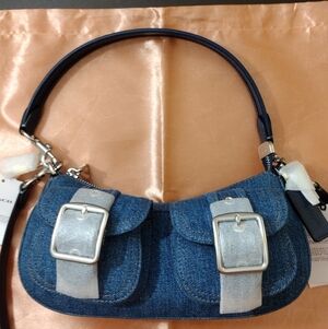 Coach Ashton denim crossbody bag Indigo Silver CAK44