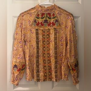 Maeve By Anthropologie Printed & Embroidered Boho 100% Cotton Blouse, Size 2