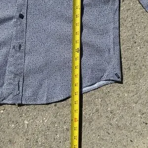 Hugo Boss Blue Micro Print Long Sleeve Button Down Shirt Slim Fit sz XL Travel
