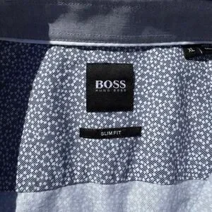 Hugo Boss shirt, mens XL slim fit, micro print button down, blue dress shirt, luxury menswear, designer button up, business casual, wedding guest shirt, tailored fit, geometric print, premium cotton, long sleeve designer shirt, euro style
