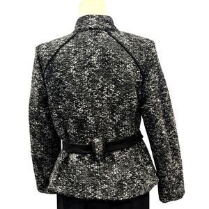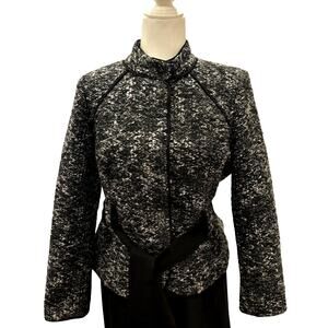 Sandro Tweed Coat Jacket Black White Tie Back Tailored Size M