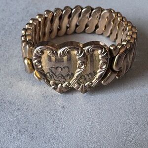 Antique Double Heart Gold Filled Sweetheart expandable Bracelet 1946