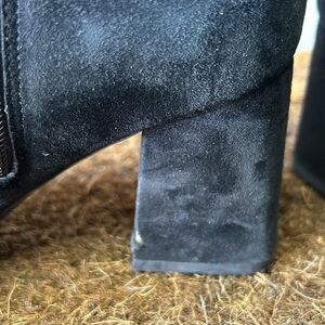 Kate Spade Adalyn Ankle Boots Black Suede Size 9 in Excellent Pre-Owned Condition. There is one small scuff on one of the heels as shown in the photos but it is very minor and I did not notice it until I was in the bright light photographing them. Very minor wear on the soles they were probably only worn once or twice, see photos for condition description.