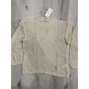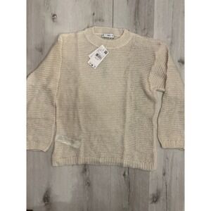 MANGO Cream Sheer Knit Sweater Oversized Crew Neck Long Sleeve XS New With Tags