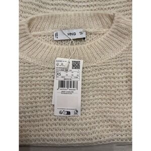 Keywords: MANGO, sheer, knit, sweater, cream, oversized, crew neck, long sleeve, open knit, lightweight, pullover, women, XS