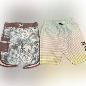 NWT art Class garment featuring a mesh lining. Gray and aqua colors & Hurley striped swim shorts
