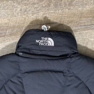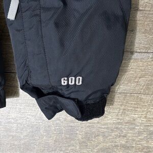 The North Face 600 Down Jacket in black is a stylish and warm outerwear option for women in size small. Featuring a zip closure, soft nylon outer shell, and 600 warmth weight, this mid-length jacket is perfect for casual occasions during the winter and fall seasons. Easy to care for with machine washable fabric, this solid black jacket with long sleeves is a versatile addition to any wardrobe, suitable for outdoor activities and everyday wear