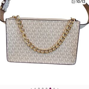 Micheal Kors Stylish Cream with brown trim Belt Bag size M.
