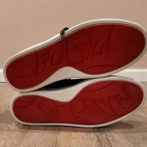 Christian Louboutin Black Sneakers with Red Soles and Blue-Red Details