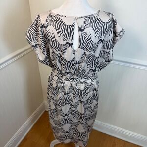 The Limited Zebra Print Belted Midi Dress Black Cream Animal Print Women Size L