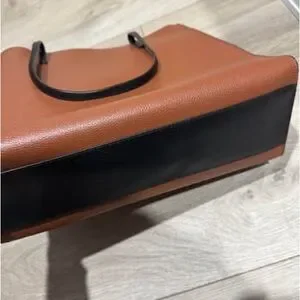 Authentic Marc Jacobs New York leather tote bag in a beautiful brown, tan, and black color combination. This is a structured, high-quality tote that’s perfect for everyday use, work, or travel.