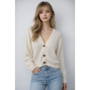 Quince 100% Organic Cotton Cropped Cardigan Ivory L Quite Luxury Modern Capsule