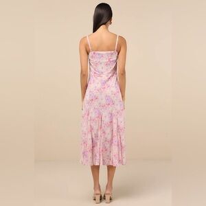 NWT Lulus Charmed Invite Pink Floral Midi Dress, Medium