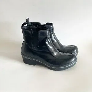 low heel, slip resistant, waterproof rain ankle boots, in good used condition