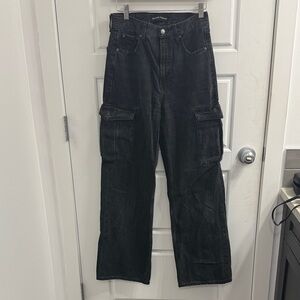 Aritzia Denim Forum Farrah Hi Rise Wide Cargo Pant Black 26