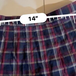 Juniors size 13. Vintage 1980’s Palmetto's plaid pleated mini skirt, made of 100% cotton. The skirt features a red and navy tartan pattern.