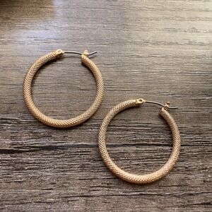 Avon Timeless Texture 1" Hoop Earrings Gold Tone 2014 Classic Costume Jewelry