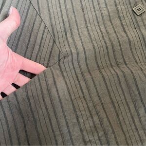 Elevate your wardrobe with the Habitat Clothes to Live In Textured Long Sleeve Button Down Tunic Jacket. This green striped tunic features a collared neckline, button closure, and long sleeves. Perfect for travel and casual occasions, this relaxed-fit jacket is made of a cotton blend fabric, making it comfortable to wear for all seasons.