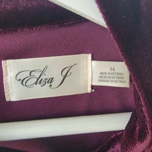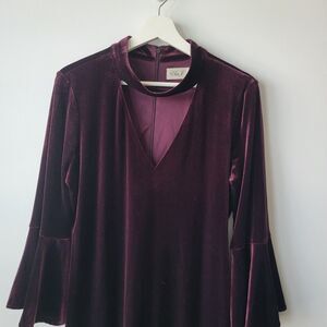 Eliza J dress womens size 14 Burgundy Velvet Bell-Sleeve Choker v-neck holiday