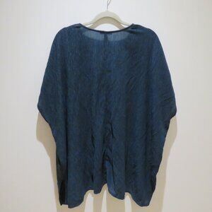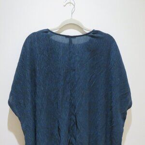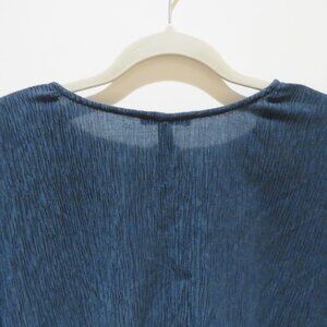EILEEN FISHER V-Neck Boxy Plisse Tunic Top Green Tencel Lagenlook Minimalist