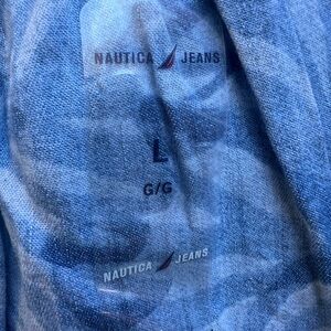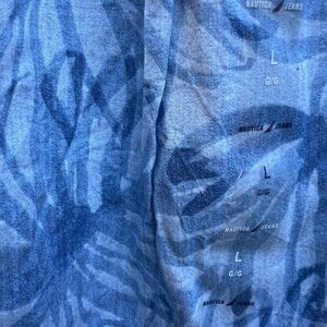 NWT NAUTICA JEANS Denim Blue Tropical Off Ruffle Shoulder Shirt Top Large