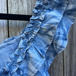 NAUTICA JEANS Denim Blue Tropical Off Ruffle Shoulder Shirt Top W Large NWT