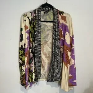 ETRO Silk & CashmereOpen Front Cardigan Duster Floral/Paisley Italy Made Size 44