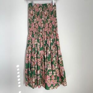 MISA Los Angeles Smocked Floral Convertible Dress Skirt Green Pink S