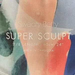 Keywords: Sweaty Betty leggings, Super Sculpt leggings, 7/8 length leggings, Abstract print leggings, Women's activewear, High waisted leggings, Workout leggings, Athleisure leggings, Yoga pants, Gym leggings, Comfortable leggings, Stylish leggings