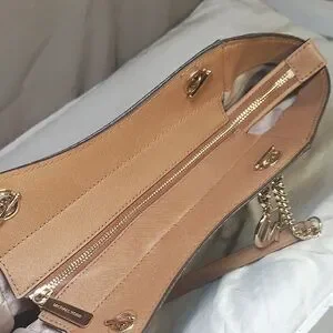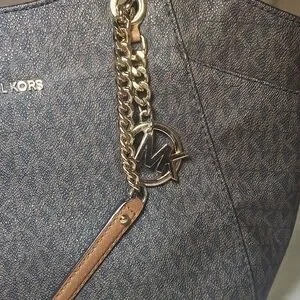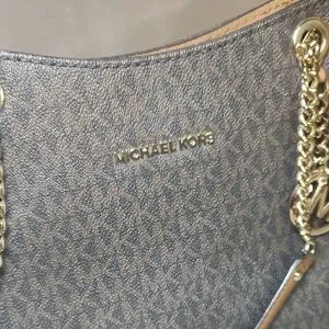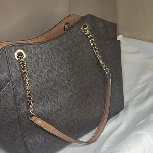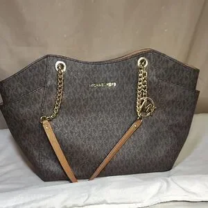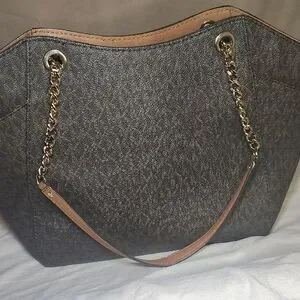 Michael Kors Signature logo Shoulder bag in dark brown. Features gold chain details and logo charm. Perfect for daily use. Excellent Condition.