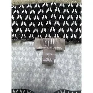 The J Jill Wearever Collection Knit Skirt in black with a pattern is a versatile and stylish addition to any woman's wardrobe. Made from a comfortable cotton blend knit fabric, this knee-length skirt features a straight and pencil style, making it perfect for both casual and workwear occasions. The pull-on and stretch material ensure a flattering fit, while the geometric pattern and mid-rise design add a modern touch. From winter to summer, this skirt is machine washable, making it a practical and chic choice for all seasons.