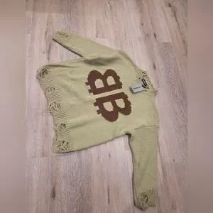 Stay cozy and stylish with this beige sweater featuring a bold brown logo. Perfect for any casual outing.