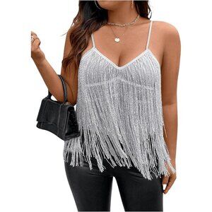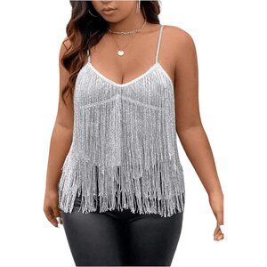 Women's Plus Size Sequin Fringed Asymmetrical Cami Top Party Club Wear