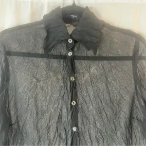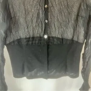 Vintage Blacky dress Berlin sleeved semi-sheer top. Black with Floral Design 8