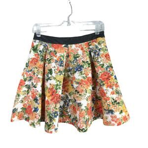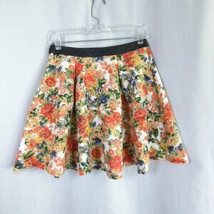 ASTR Mini Skirt Womens Medium Red Floral Circle Pleats