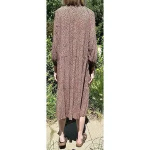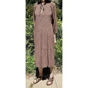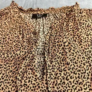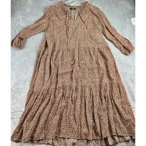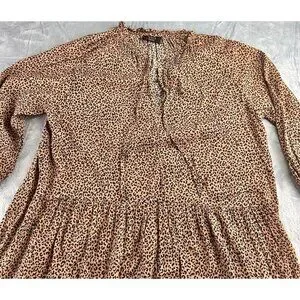 VICI Tiered Midi Dress Size Medium Tan/Black Leopard/Cheetah Print Tie Front