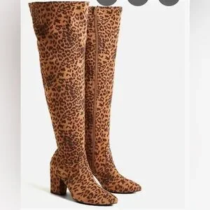 Chic over the knee boots with striking animal print. Ideal for bold fashion statements.
