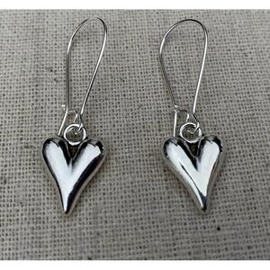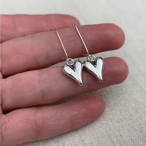 🩶 NEW SHINY SILVER PUFFY HEART DANGLE EARRINGS. DAINTY & sweet, they send just the right message of LOVE wire hoop hypoallergenic & nickel free 🩶