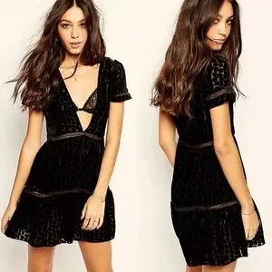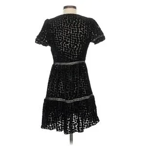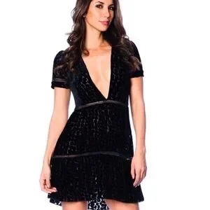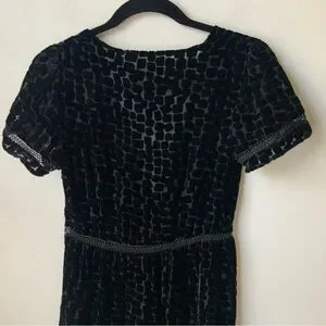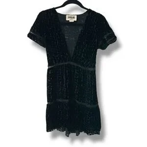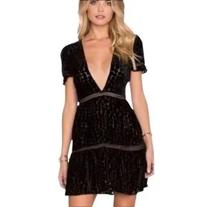 STONE COLD FOX Virgo Burnout Silk Velvet Dress Textured Plunge Black Size XS/S