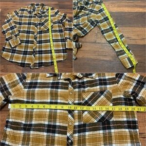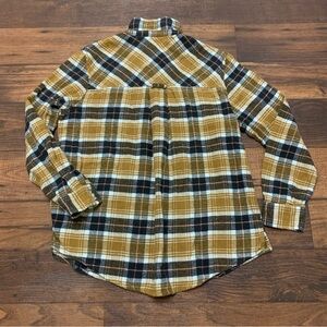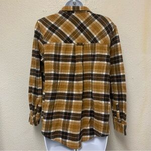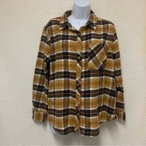 Arizona Jean Co. Flannel Button Down Shirt Size LYellow Brown Plaid Long Sleeve
