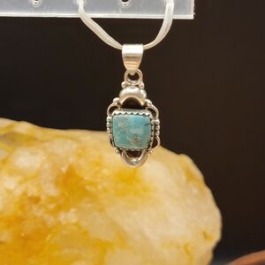 Elegant sterling silver pendant featuring a stunning rare White Water turquoise stone. The pendant measures a petite 1-1/8" long by 1/2" wide. Perfect for adding a touch of color to any outfit. This is a very nice pendant show casing the White Water matrix. In NEW handmade condition. View all photos and ask questions prior to purchasing. Thank you for your interest.